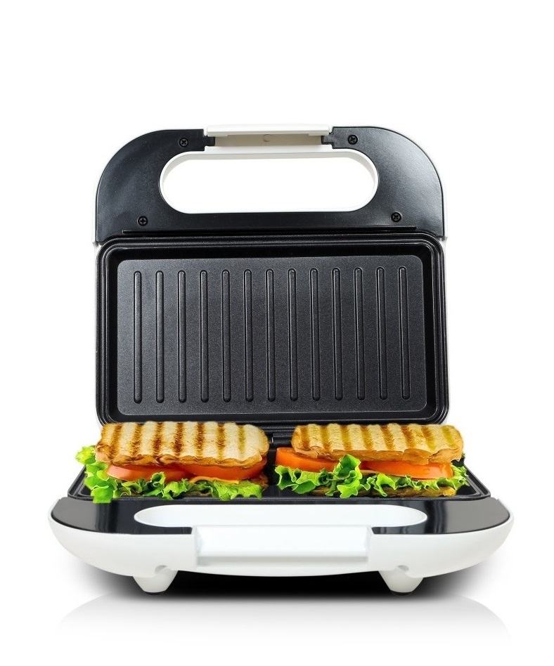 Grilling is made easy in 4 quick steps: 1. Plug in your grill (green light indicates preheating) 2. Prepare sandwich as normal with your favourite fresh ingredients. Butter your bread if you want golden grill marks. 3. Wait until the green light cuts off, then place sandwich/food on non-stick grill plate. 4. Take it out when it’s done, and enjoy!